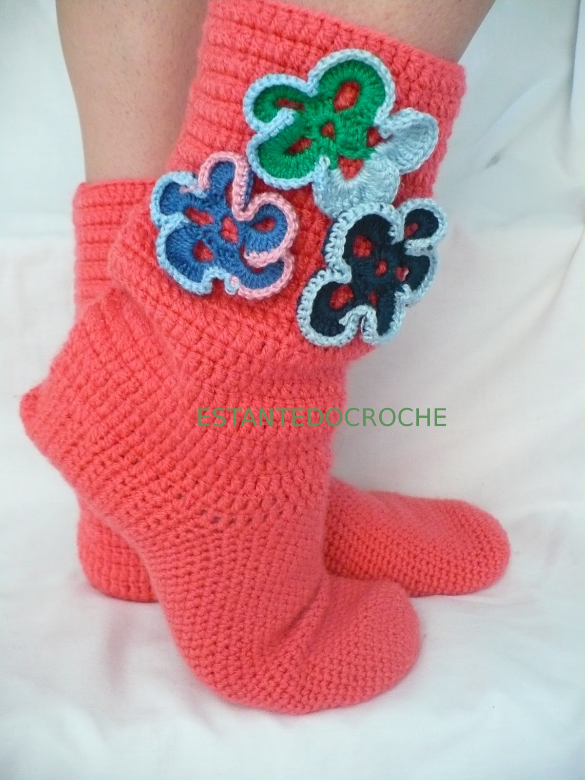 Bota em croche com amores perfeito, perfeita para presentear e esquentar os