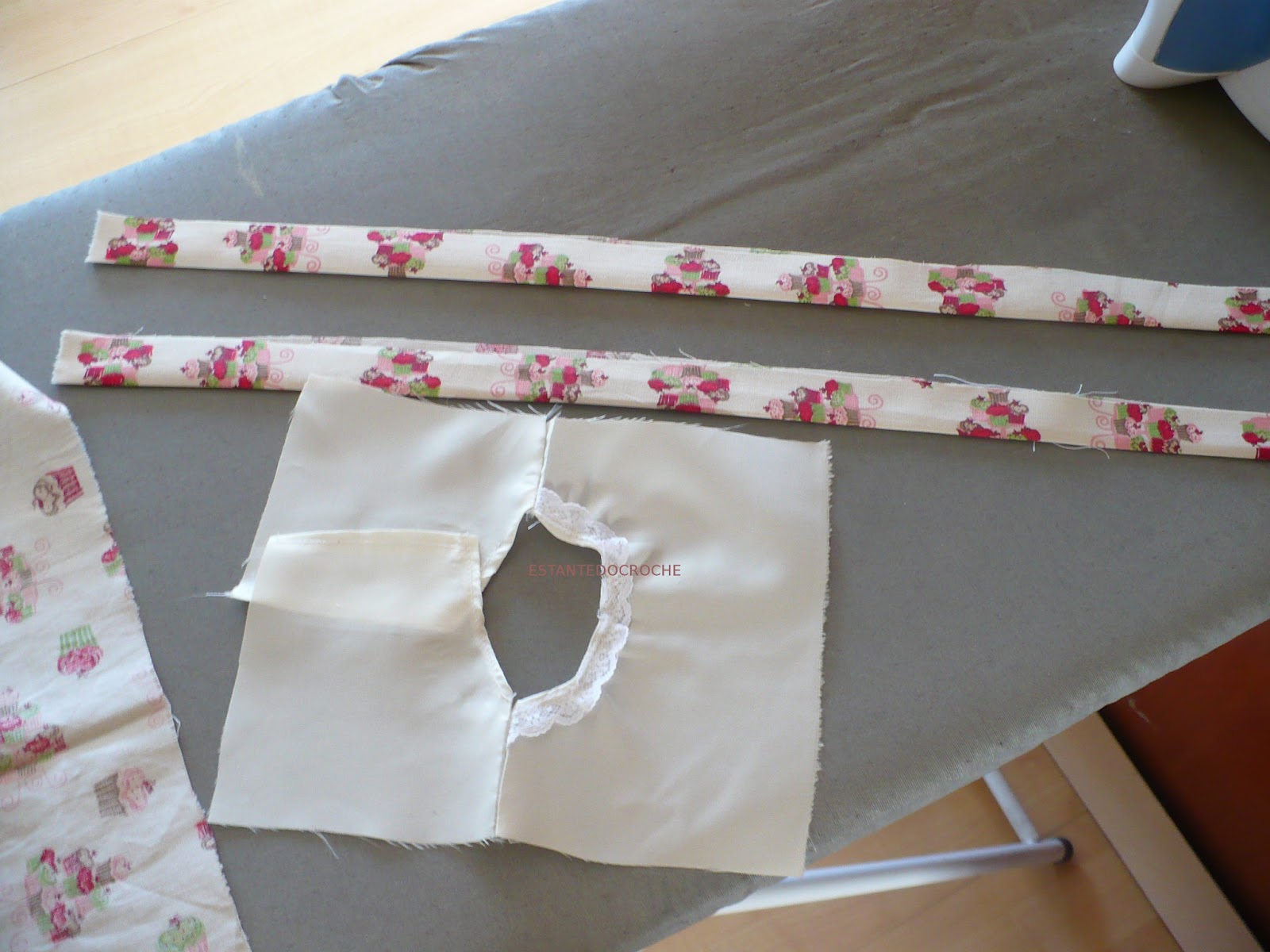 Fiz a bainha e costurei uma rendinha, para ficar bem delicado.